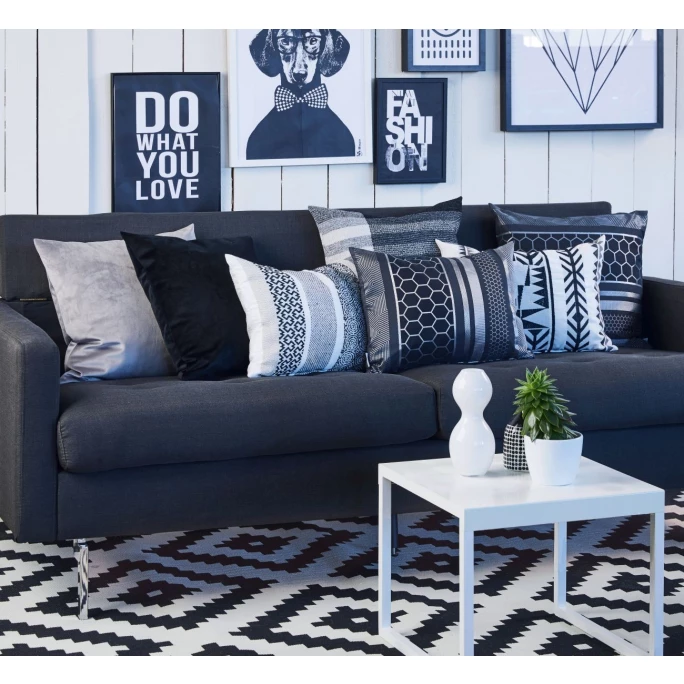 HK Living Cotton Zigzag Kissen Mit Füllung - 40x60 Cm - Black-cream
