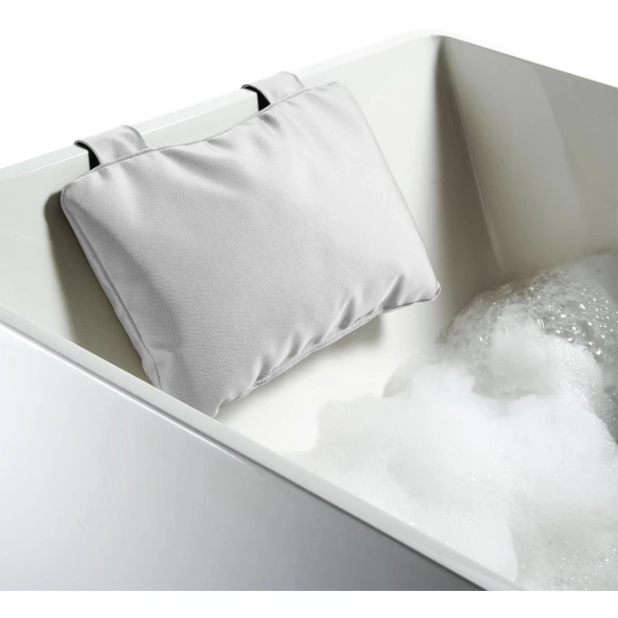 Bequem baden ohne nasse Haare wird mit dem LOFT Badewannenkissen von Decor Walther ein Kinderspiel. Das bequeme Nackenkissen für Badewannen, insbesondere frei stehende oder Badewannen aus Mineralguss wird einfach über den Wannenrand gehängt. Die Lasche mit Saugnäpfen verhindert, dass das Kissen während des Badens verrutscht. Dank seiner textilen Textur ist es besonders bequem und trägt zu einer natürlichen Rückenunterstützung bei. Das angenehme Material ist besonders sanft zur Haut und in Verbindung mit Wasser leicht verträglich. Auch dank des pflegeleichten Materials ist das Kissen bei 30° in der Maschine waschbar. Wählen Sie eine von mehreren Farben aus und bestellen Sie noch heute das hochwertige LOFT Wannenkissen der Marke Decor Walther.