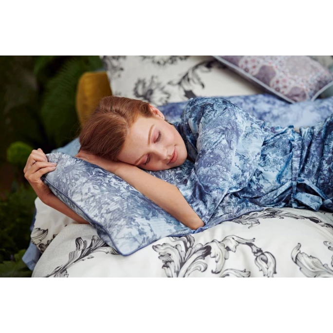 Kennen Sie schon Toile de Jouy? Dieser Stoff wurde von einem Textildrucker nahe Versailles erfunden und mit romantischen Motiven des Landlebens, historischen Ereignissen oder biblischen Szenen, vorzugsweise in einer Farbe, bedruckt. Er dient als Quelle der Inspiration für das stilvolle Deko-Kissen Aurelie von ESSENZA. Jetzt ist dieser schöne Druck mit einer modernen, einzigartigen Wendung zurück. ESSENZA entschied sich für Blumenmotive und raffinierte Illustrationen von Bäumen. Die Farbgebung macht es noch zeitgemäßer und verleiht dem Print einen frischen sowie femininen Touch. Das fein glänzende Zierkissen ist aus 100% Polyester-Samt gefertigt und mit einer weichen Polyester-Füllung ausgestattet. Egal ob im Wohnzimmer auf der Couch, in Ihrem Lieblingssessel, im Wintergarten oder in Ihrem Schlafzimmer, mit dem Deko-Kissen Aurelie inkl. Füllung von ESSENZA holen Sie sich einen ganz besonderen Eyecatcher in Ihr Zuhause. Überzeugen Sie sich selbst von dem hochwertigen Kissen und verleihen Sie Ihren vier Wänden einen auffallend schönen und exklusiven Touch!