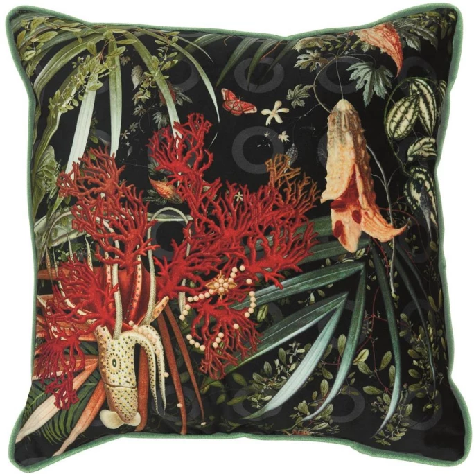 Das dekorative Kissen Menagerie ist Teil der Extinct Animal Pillows Reihe von Moooi und verleiht Ihrem Sofa, Stuhl oder Bett eine unvergleichbar traumhafte Note. Der quadratische Kissenbezug zeigt verschiedene ausgestorbenen Tiere, umgeben von ihrer natürlichen Flora und Fauna. Im Hintergrund sind dezent helle Kreise zu sehen, die die leuchtende Haut eines ebenfalls ausgestorbenen Tintenfisches darstellen. Das Dekokissen ist aus einem weichen und glatten Premium-Samtstoff gefertigt und hat einen Reißverschluss mit dem Moooi-Logo als schönes Detail. Als zusätzliche Besonderheit ist das Kissen mit einer Kordelpaspelierung in Kontrastfarbe versehen. Diesen bezaubernden Dekobezug gibt es in verschiedenen Farb-Ausführungen bei uns, entsprechende Inletts dazu finden Sie ebenso in unserem AMBIENDO-Shop. Warten Sie nicht und bestellen Sie jetzt den wunderbar kunstvollen Kissenbezug Menagerie von Moooi, der Ihre Wohnräume in beeindruckendem Charme erstrahlen lässt!
