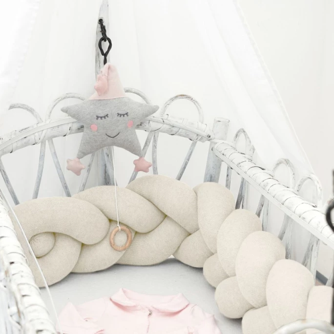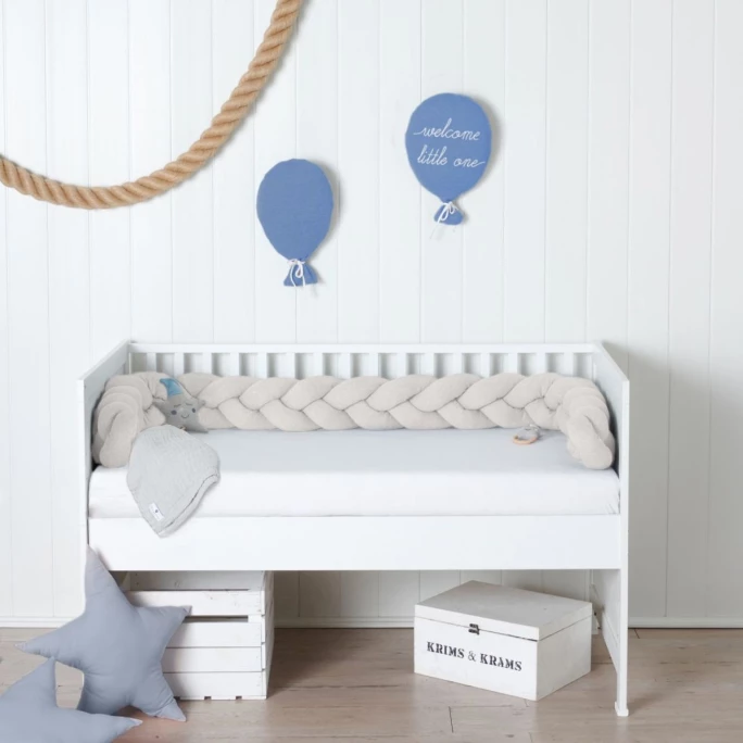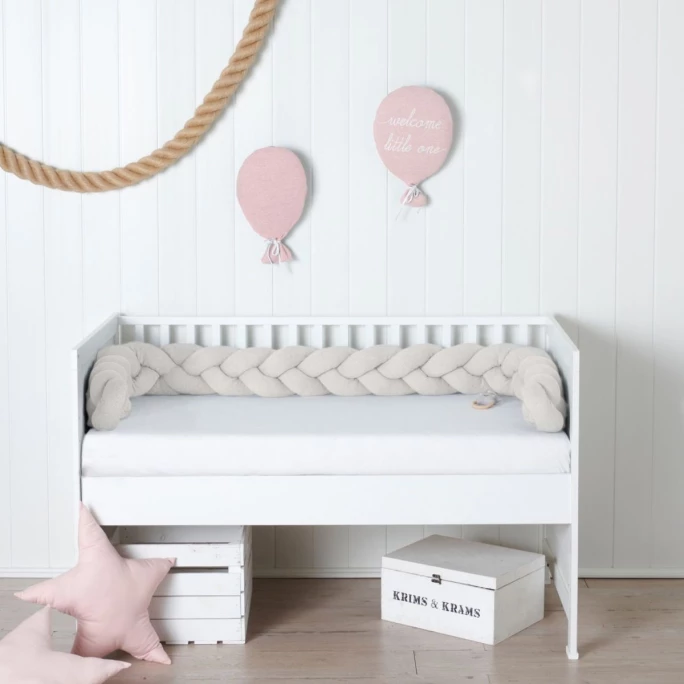 Die geflochtene Strick Bettschlange der Marke Nordic Coast Company sorgt dafür, dass sich Ihr Baby in seinem Bettchen rundum geborgen fühlt und schützt sein empfindliches Köpfchen davor sich am Bettrand anzustoßen. Das einzigartige Zopfdesign sieht nicht nur besonders schön aus, es erfüllt auch praktische Funktionen: Die Bettschlange lädt mit ihrer festen, geflochtenen Struktur gepaart mit einer kuschelig weichen Strick-Oberfläche zum Greifen, Streicheln und Kuscheln ein und fördert so die taktile Wahrnehmung und Motorik Ihres Kindes. Die Bettumrandung hat eine Größe von 17×300 cm und lässt sich an alle gängigen Bettchengrößen anpassen. Selbstverständlich kann die Bettschlange von der Marke Nordic Coast Company auch in Krippen, Wiegen, auf dem Wickeltisch oder der Spieldecke Verwendung finden. Aufgrund des zeitlosen Designs im trendigen Strick Look wird es sicher auch später, wenn Ihr Kind größer ist, noch einen Platz im Jugendzimmer finden – etwa als Bettrolle oder Sofakissen. Die Bettschlange besteht aus hochwertiger OEKO-TEX® Standard zertifizierter Baumwolle, sie ist kuschelig weich und kann völlig unkompliziert bei 30 Grad in der Waschmaschine gewaschen werden. Überzeugen Sie sich selbst und bestellen Sie jetzt die geflochtene Bettschlange von der Marke Nordic Coast Company.