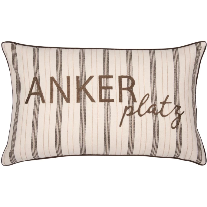 Jetzt wird es gemütlich! Die Kissenhülle COTE von pad schafft in Ihrem Wohn- und Schlafraum ein stilvolles Ambiente. Das edle Design besticht dabei durch die harmonische Streifenmusterung und den maritimen, großzügigen Schriftzug ANKERPLATZ. Der hochwertige Bezug besteht aus pflegeleichter Baumwolle und lässt sich aufgrund des Reißverschlusses leicht beziehen. Ganz gleich, ob Sie das geschmackvolle Deko-Kissen auf dem Sofa oder dem Fernsehsessel platzieren, es sorgt überall für einen dekorativen Eyecatcher und ist ein unverzichtbares Wohnaccessoire. Seien Sie kreativ und dekorieren Sie Ihr Zuhause mit der exklusiven Kissenhülle COTE von pad. Wir bieten Ihnen den stilvollen Bezug mit zwei verschiedenen coolen Schriftzügen in unserem AMBIENDO Shop an. Überzeugen Sie sich selbst!