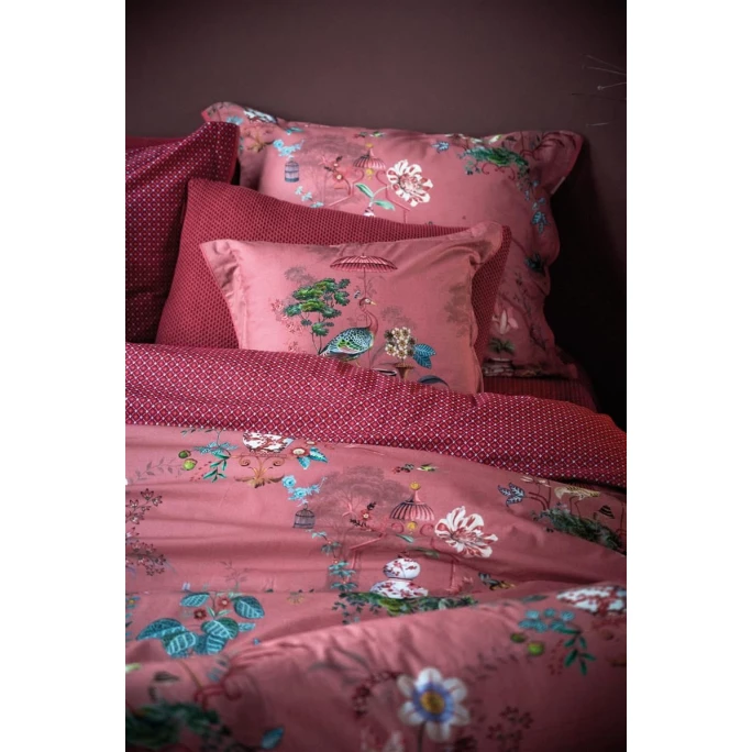 Das wunderschöne Wendedessin des Chinese Porcelain Zierkissens des niederländischen Labels Pip Studio, verleiht Ihrem Wohn- oder Schlafzimmer in Handumdrehen einen außergewöhnlichen Touch! Die Vorderseite ist mit einem fantasievollen Pfau, einer chinesischen Porzellanvase, filigranen Blüten und hochgewachsenen Kiefern verziert, während die Rückseite durch ein geometrisches Allover-Muster besticht. Die elegante Oxford-Bordüre mit Zierpaspel und der rückseitige Knopfverschluss mit Textilknöpfen runden das optische Gesamtbild dabei perfekt ab. Aus reiner Perkal-Baumwolle gefertigt, ist Chinese Porcelain durch die hochwertige Polyesterfüllung besonders weich und pflegeleicht. Der Bezug kann zur Reinigung problemlos in die Waschmaschine und anschließend in den Trockner gegeben werden. Und wenn Sie es gerne perfekt mögen, dann kombinieren Sie das wunderschöne Kissen einfach mit der passenden Chinese Porcelain Bettwäsche oder Tagesdecke von Pip Studio und machen den einzigartigen Look perfekt. Lassen Sie sich von dem wunderschönen Dessin begeistern und machen sich oder einem lieben Menschen mit dem Chinese Porcelain Zierkissen von Pip Studio eine besonders schöne Freude!