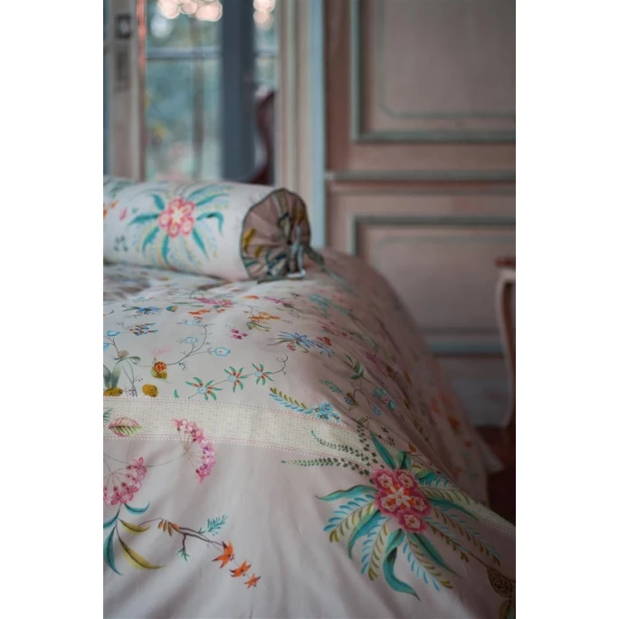 Egal ob im Schlaf- oder im Wohnzimmer: Die Petites Fleurs Nackenrolle des niederländischen Labels Pip Studio sorgt nicht nur für eine bequeme Auszeit, sondern punktet auch noch durch ein wunderschönes florales Dessin mit üppigen Fantasieblumen, gestreifter Zierpaspel und gestreiftem Schleifenverschluss. Aus reiner Perkal-Baumwolle gefertigt, ist das Rollkissen durch die hochwertige Polyesterfüllung besonders weich, anschmiegsam und pflegeleicht. Der Bezug kann zur Reinigung problemlos in die Waschmaschine und anschließend in den Trockner gegeben werden. Und wenn Sie es gerne perfekt mögen, dann kombinieren Sie die bequeme Nackenrolle doch einfach mit der passenden Bettwäsche aus der Petites Fleurs-Kollektion von Pip Studio und machen den einzigartigen Look perfekt. Lassen Sie sich von dem wunderschönen Dessin begeistern und machen sich oder einem lieben Menschen mit der Petites Fleurs Nackenrolle von Pip Studio eine besonders schöne Freude!