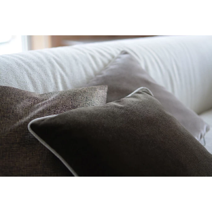 In klaren, einfarbigen Tönen verführt uns das Uni-Kissen Cloud von Rohleder aus kuschelweichem Velours mit seiner wunderschöne Brillanz und Haptik. Besonders zur Geltung kommt Cloud in Kombination mit gemusterten Kissen.